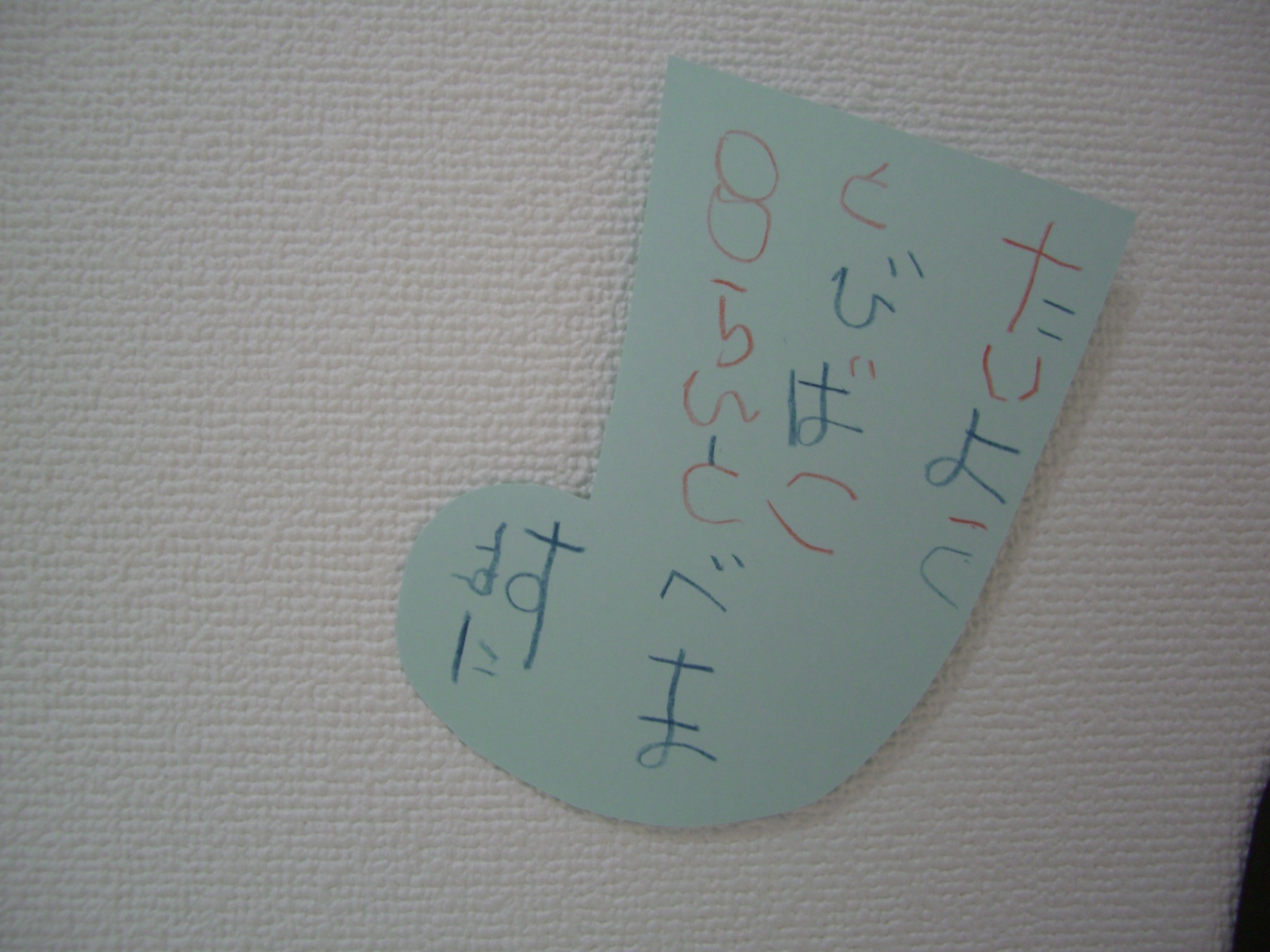 私のお気に入りは、こどもたちがかいてくれたサンタさんへのお願いの靴下。