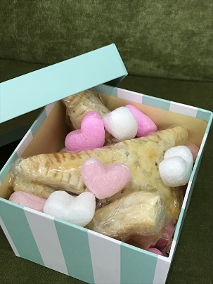 二人の手作りのチョコレートパイ 箱とハートはMさんが選んだそうです笑 |
