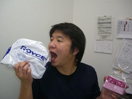 スタッフからチョコをもらってごきげんです♪ どんどん真ん丸に・・・ |