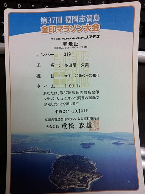 これが完走証。 こんなときもただくまの漢字はは間違われるなんて、 |