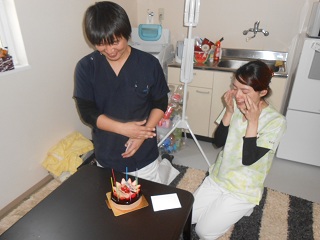 『おめでとうございま~す♡』と、ケーキのプレゼント