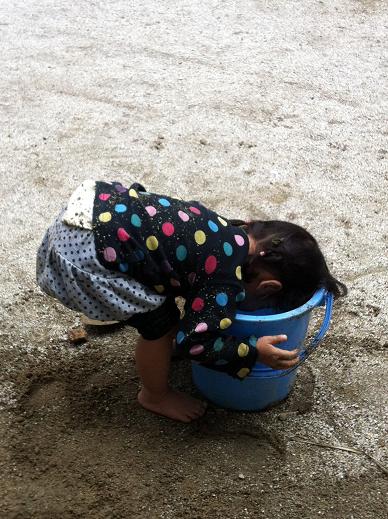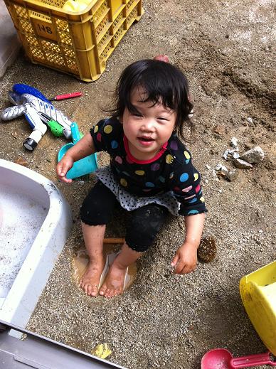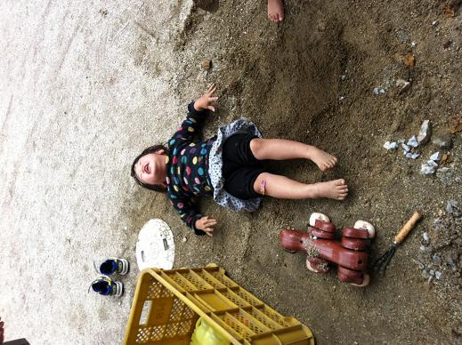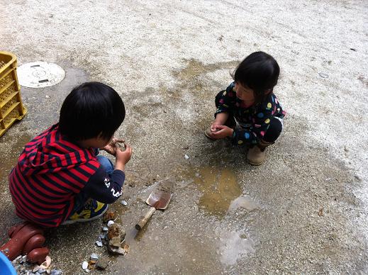 お庭で泥だんごをつくってお迎えしてくれました。